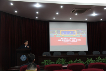 Professor Peng Qinlong made a report about SFL’s 2016-2018 scientific research. His analysis on the publications in the last three years showed a rise in the number of published papers, books and projects, as well as awarded works. In addition, he proposed several solutions to SFL’s current problems, after analyzing the publication of high-level papers by each department.