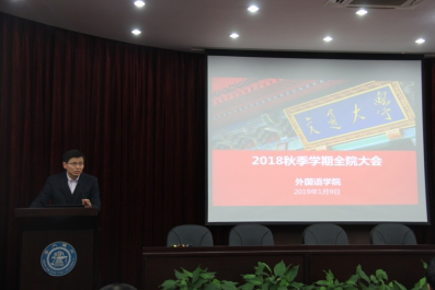 Professor Hu was in charge of reviewing SFL’s 2018 work. In 2018, the School of Foreign Languages was able to realize the aims of the 19th National Congress of the Communist Party of China, by focusing on the deployment of the school party committee, and taking inspections as an opportunity to promote the development of the college's various undertakings. SJTU also made great progress in talent cultivation, scientific research, recruitment of qualified teachers, programs for international students and cultural exchange activities. Professor Hu spoke highly of the groundbreaking achievements made in 2018, including the election of Shang Biwu as a foreign academician in the Academy of Europe, the approval of Ding Hongwei’s project as a Major Project by the National Social Science Fund of China, and the admission of the project “Reform of College English Teaching” to the list of Key Reform Projects for Undergraduate Education in Shanghai. 2018 was also the year in which the project “Reform and Practice of Graduate Training” was awarded with the second prize of National Teaching Achievements in Higher Education, SFL students impressed us in foreign language competitions, such as the national competition of debate in German, and the number of SFL scientific works broke records. Professor Hu also congratulated faculty members for their efforts and expressed his wish to continue working together to achieve new successes in the future. In addition, he presented 2019’s work prospects based on current work issues. In 2019, SFL will continue to promote the implementation of the comprehensive reform program, increase the introduction of high-level talents, improve the supervision of the teaching process, and further deepen the reform of foreign language teaching in universities.