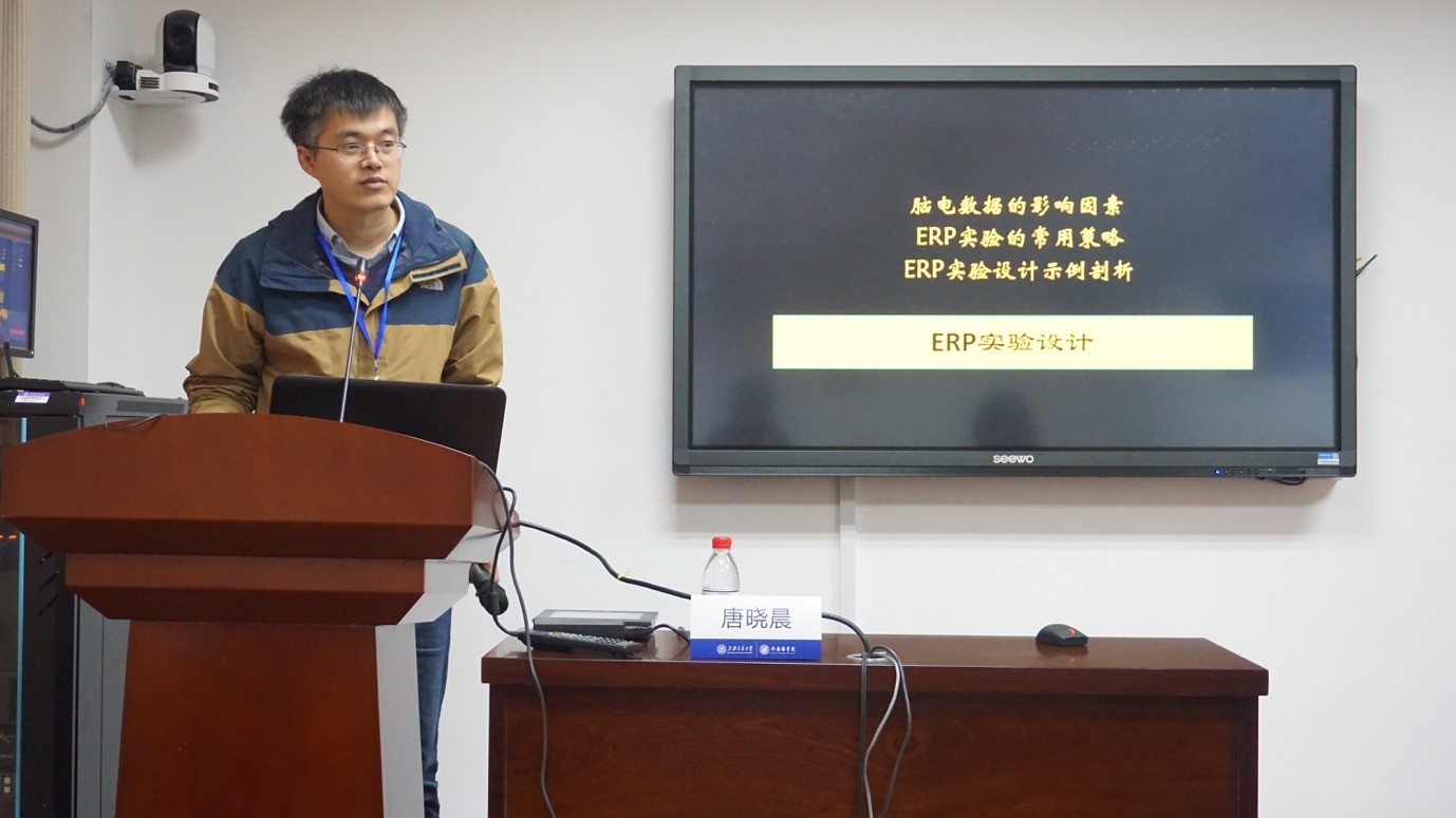 Then, Tang Xiaochen, assistant researcher of EEG Imaging Room of Shanghai Mental Health Center, gave a speech on EEG/ERP Experimental Design and Data Processing from three dimensions, including ERP experimental design, EEGLAB pretreatment process and independent component analysis. For ERP experimental design, Tang Xiaochen explained that the factors affecting EEG data include stimulus scheduling, duration of stimulation, stimulation sequence, frequency of stimulation, etc. In the EEGLAB pretreatment process, he said that the collected electrical activities need to be preprocessed. In the analysis of independent components, there is a cocktail effect for which different electrical activities need to be separated to maintain their high quality. More specifically, Tang Xiaochen showed the audience how to use the Independent Component Analysis (ICA) to remove artifacts and help solve operational problems. In the following two days, he introduced the application of E-prime, the preparation before the experiment, and the identification of artifacts collected by EEG. Finally, he explained how to carry out ERP data processing, such as multiple comparison corrections, ERP and ERSP results review and results mapping, followed by a heated discussion with teachers and students.