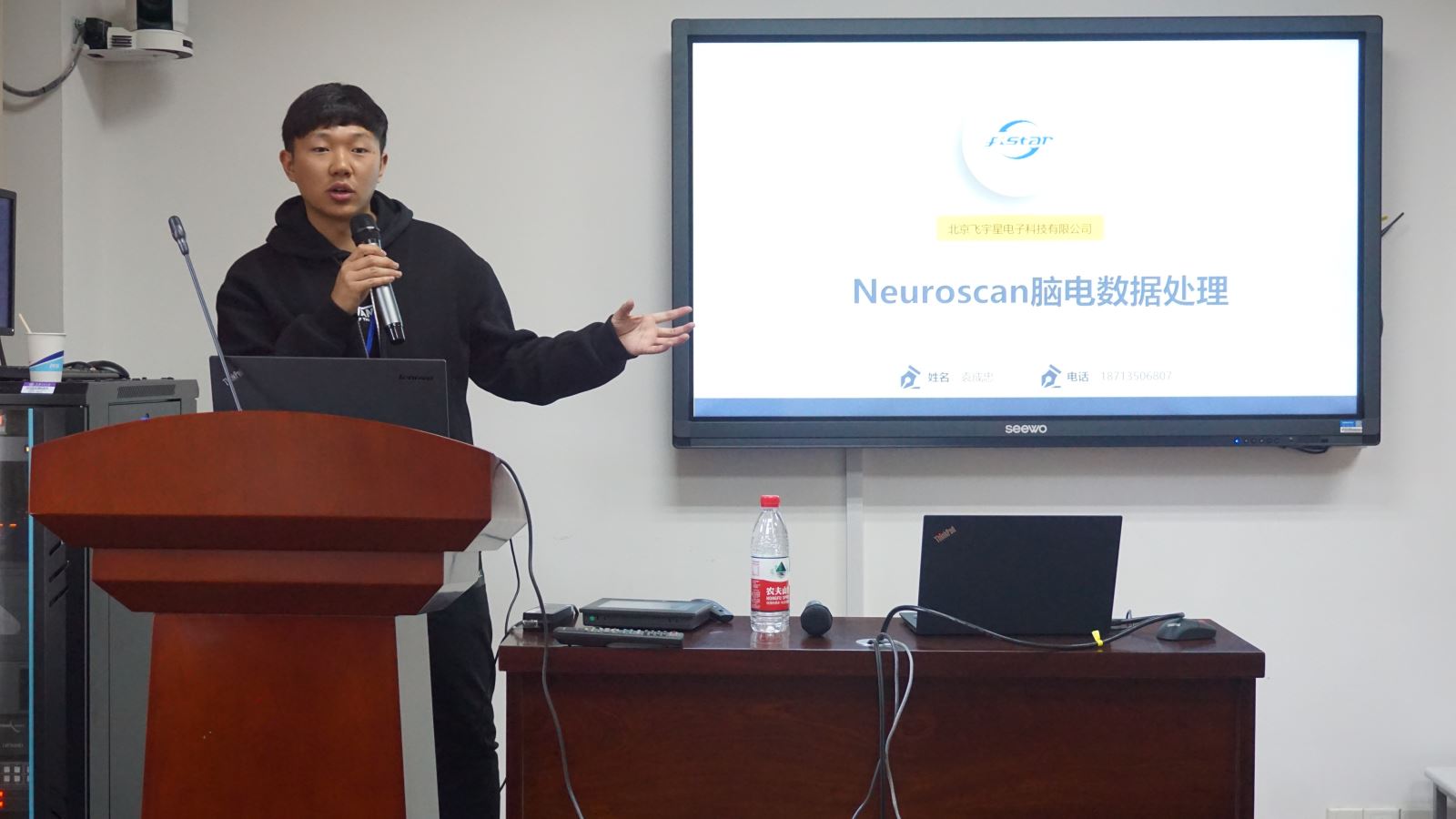 Finally, Yuan Chengzhong, an engineer of Beijing Feiyuxing Company, introduced the use of Curry, a software that supports ERP. Starting with the topic “Curry Software Data Processing”, he introduced the software's sampling rate, collection mode, data analysis, waveform adjustment, and invited students and teachers to take practice on the stage.