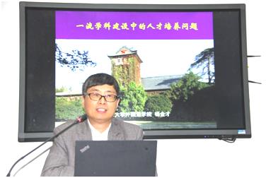 Yang Jincai, Dean of the School of Foreign Studies at Nanjing University, stressed the issue of talent cultivation in first level discipline construction, and shared their talent training measures in “Double First-class" construction.