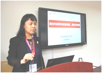 Chen Xiangjing, Dean of School of Foreign Studies at Xi'an Jiao Tong University, said that when facing development bottlenecks, we should build our own disciplines to improve the teaching quality and serve the needs of university, local and national development and adhere to the path of interdisciplinary and diversified development.