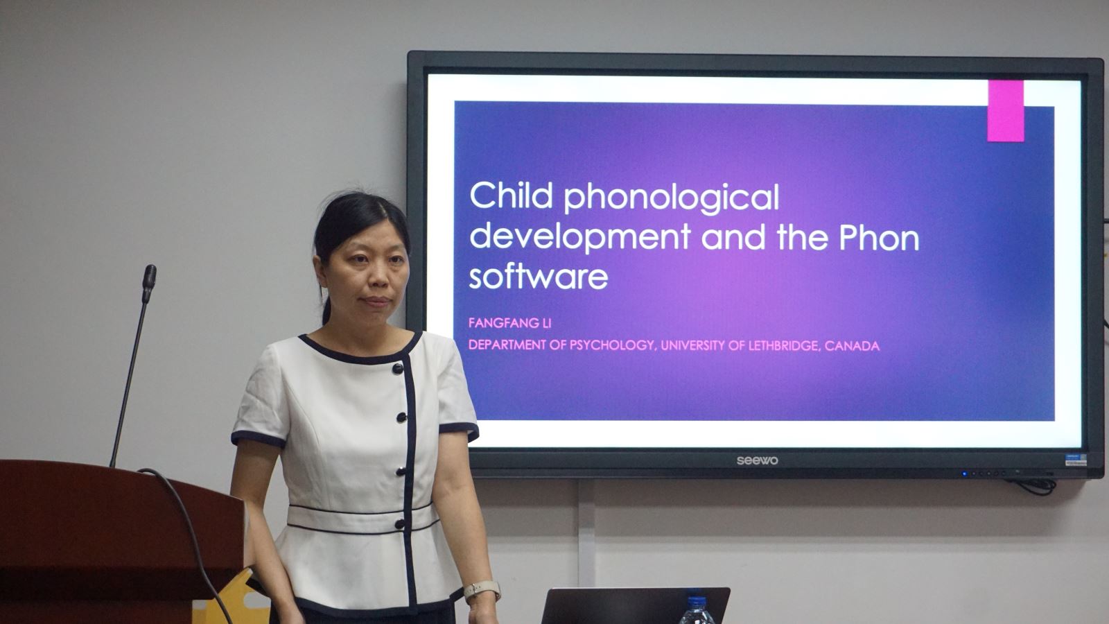With the topic of “Child phonological development and the Phon software”, Professor Fangfang Li from Department of Psychology, University of Lethbridge, Canada introduced the corpora of Talkbank, and the software Phon. In the study of child phonological development, human experiment based on naturalistic observations is hard to control or manipulate, while the focus on this vulnerable population is a key question related to human nature. To handle this issue, experiments of longitudinal and cross-sectional design have been developed, and researchers can collect information by diary study, transcription, and acoustic methods. In the trend of big data, an experiment may well go through acquisition, storage, and analysis. At the moment, studies based on group diversity are increasingly important. In this case, she gave a typical model of a leading language database- Talkbank, for sharing and studying human conversational interactions. To be specific, several demos related to children’s phonological traits were shown with scripts, materials. and the aid of Phon, a software program that supports the building of textual and phonological data corpora.