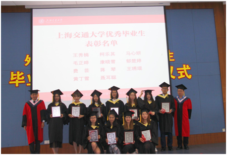 Together with Professor Hu Kaibao, SFL Party Secretary Ding Jian read the namelist of “2019 Shanghai Outstanding Graduates” and “2019 SJTU Outstanding Graduates”, and awarded medals and honor tassels to outstanding graduates .