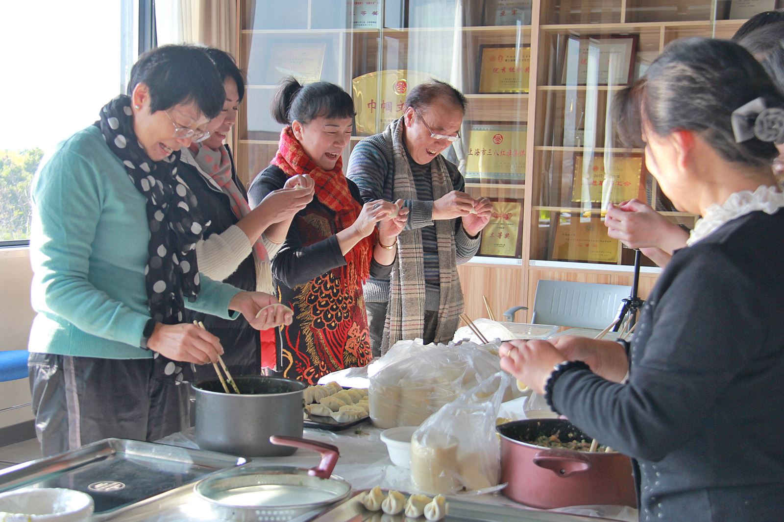 More than 60 faculty of School of Foreign Languages (hereafter referred to as SFL), Shanghai Jiaotong University, gathered together to make Chinese dumplings at Yang Yongman Building on Dec 17th to welcome the Chinese New Year.