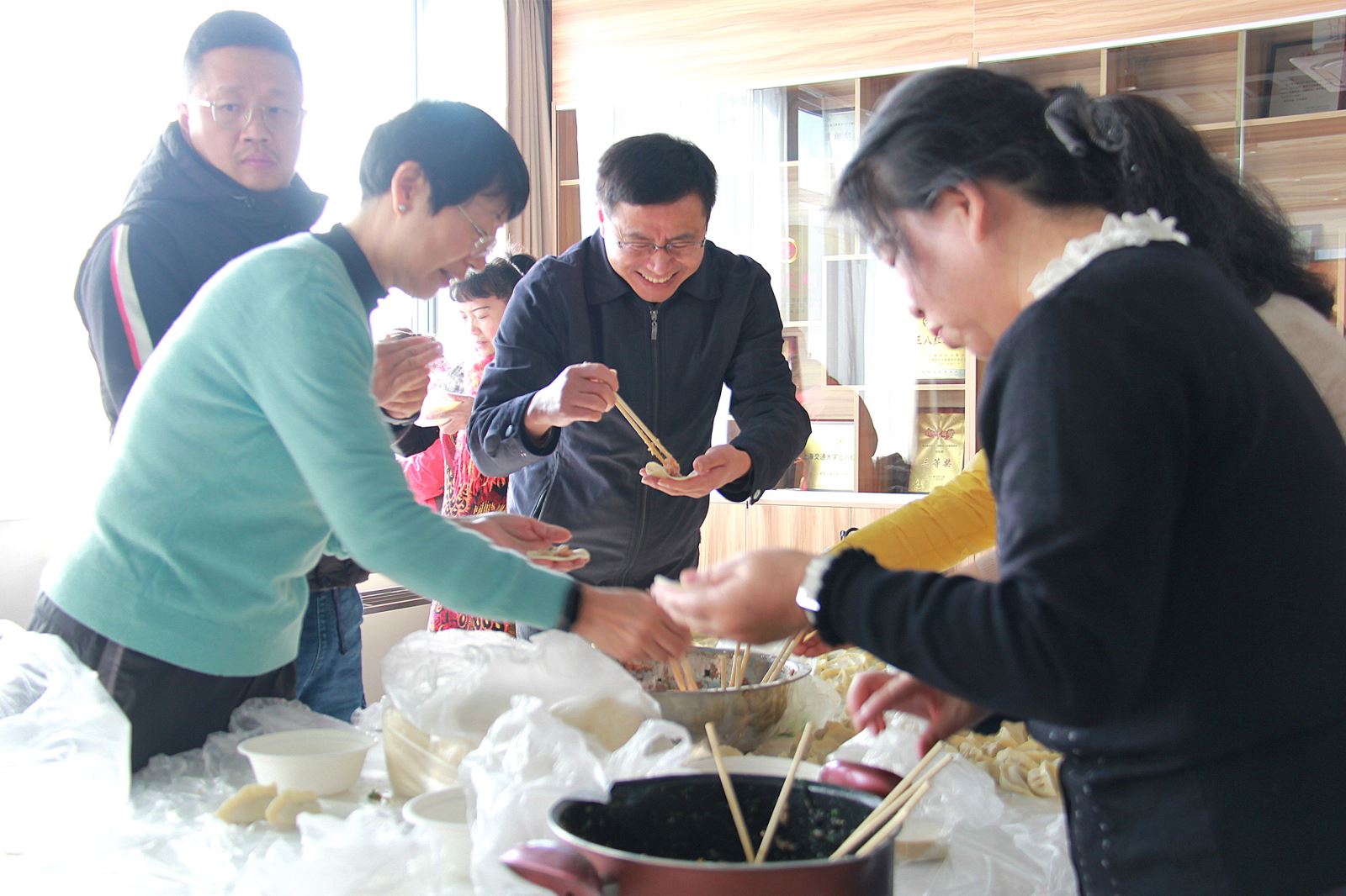 Ding Jian, Secretary of CPC SFL Committee, joined in making dumpling and talked about its significance.