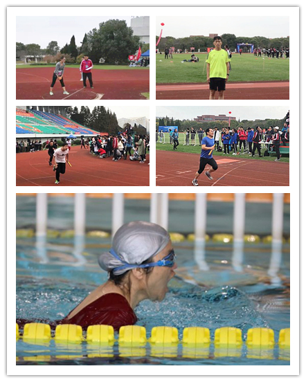Teachers excelled in various sports events. Ms Wang Yuexi and Ms Ding Hongwei won the first and fourth place of women's Standing Broad Jump of Group B. Ms Fan Likun won the second place of women's 100m breaststroke in Faculty Group A and the third place of women's 50m breaststroke in Faculty Group A. Mr. Wei Xiaofei won the fourth place of men’s 100m freestyle and the seventh place of men’s 50m freestyle in Faculty Group B. Ms Zhang Li won the sixth place of women’s 50m breaststroke in Faculty Group B. Mr. Shang Biwu, Mr. Wang Jinbo, Mr. Yang Dongdong and Mr. Jiang Yupeng chased in the 4*100m relay race. Ms. Qiu Kuanyong and Ms. Lu Qianxi competed on the 100m race, showing the energetic spirit of teachers from School of Foreign Languages.