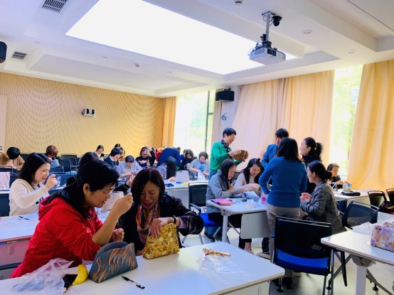 The event of “Promoting Handcraft Culture by DIY Koujin Handbag-Making” , which was organized by the Trade Union of School of Foreign Languages of Shanghai Jiao Tong University, took place at noon on November 5, 2020 in Room 107 of Yangyongman Building and attracted more than 50 faculty and staff members.