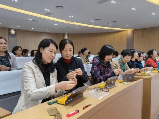 A senior handicraft instructor from Shanghai Tongyan Culture Communication Company was invited to be present at the workshop to explain step by step and provide hands-on guidance on the making of sandalwood combs.