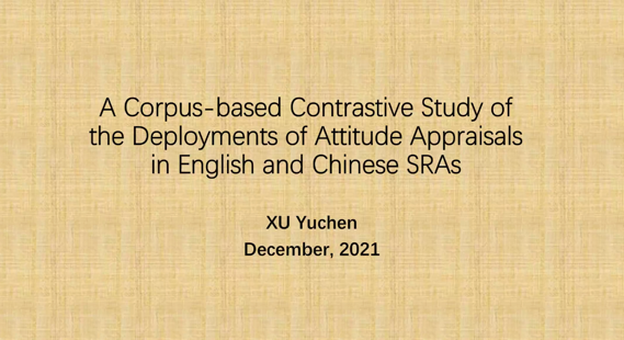 Prof. Yuchen Xu’s presentation was entitled "A Corpus-based Comparative Study of Attitudinal Resources in English-Chinese SRAs", and was chaired by Prof. Min Yang. Based on the comprehensive mode and typological mode, and the two distribution dimensions of “structure” and “evenness”, the study conducted quantitative analysis and analyzed the attitudinal resources used in English and Chinese scientific research articles (SRAs) and revealed the similarities and differences between them.