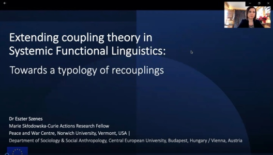 Dr. Eszter Szenes presented on the topic "Extending Coupling Theory in Systemic Functional Linguistics: Towards a Typology of Recouplings", and the speech was chaired by Dr. Tao Qu. The presentation explored the linguistic resources that play a role in constructing business decision-making in undergraduate business reports at the level of instantiation, drawing on APPRAISAL and IDEATION in discourse semantic systems. By discussing the criteria of realizing different types of coupling and recoupling in nominal groups, clauses, clause complexes and across sentences, Dr. Szenes constructed a typological framework for analyzing recoupling at the level of discourse semantics.