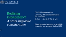 Dr. Dongbing Zhang’s s talk "Realising ENGAGEMENT: A cross-linguistic consideration" was chaired by Dr. Thu Ngo. The study compared the congruent realizations of ENGAGEMENT System in English, Mandarin Chinese, and Khorqin Mongolian, drawing on the lexico-grammatical systems of POLARITY, MODALITY, ASSESSMENT, and MOOD. Dr. Zhang pointed out that the ENGAGEMENT system can provide an effective analytical perspective for cross-linguistic comparative and typological studies.