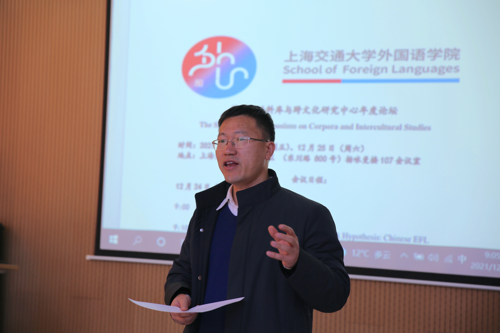 The 6th Annual Forum of the Center for Corpora and Intercultural Studies was successfully held at the School of Foreign Languages of Shanghai Jiao Tong University from December 24 to 25, 2021. Fourteen experts and scholars from the School of Foreign Languages, including Wu Shiyu, Yang Bingjun, Ding Hongwei, Lei Lei and Tian Yan, made presentations on the topics of corpus, theoretical linguistics, applied linguistics and interdisciplinary research.