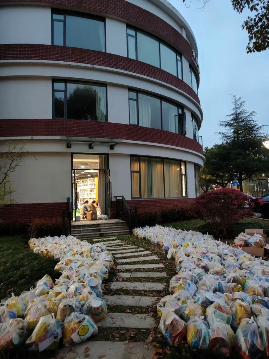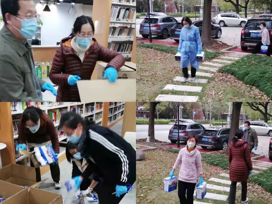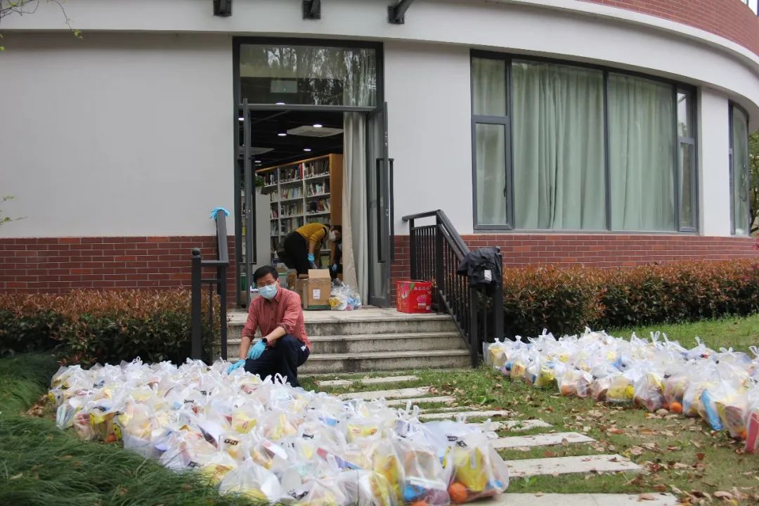 When the first batch of gifts were ready, Ding Jian, Party Secretary of SFL , and Zhu Yifan, Vice Party Secretary of SFL , lead the volunteer teachers Wang Lin, Lu Qianxi, Yang Mingming, Yang Dongdong and Liu Yan to go to the dormitories.