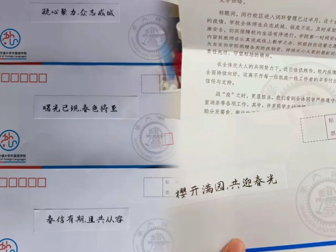 Mingming Yang, Qianxi Lu, Jing Zhang, Dongyan Wang, Min Shi place the letters into the packages carefully.