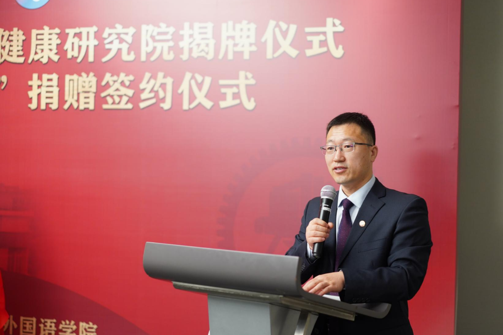 Jian Ding, Party Secretary of the School of Foreign Languages at SJTU, spoke on behalf of the school. He said that in recent years, the School of Foreign Languages had gained outstanding achievements in scientific research and personnel training in languages and health, thanks to the comprehensive discipline advantage of SJTU. Ding remarked that the establishment of the Institute will help to deepen the interdisciplinary integration, construct the theoretical systems, transfer science into high technology, make new contributions to healthy China strategy and a human community with a shared future.