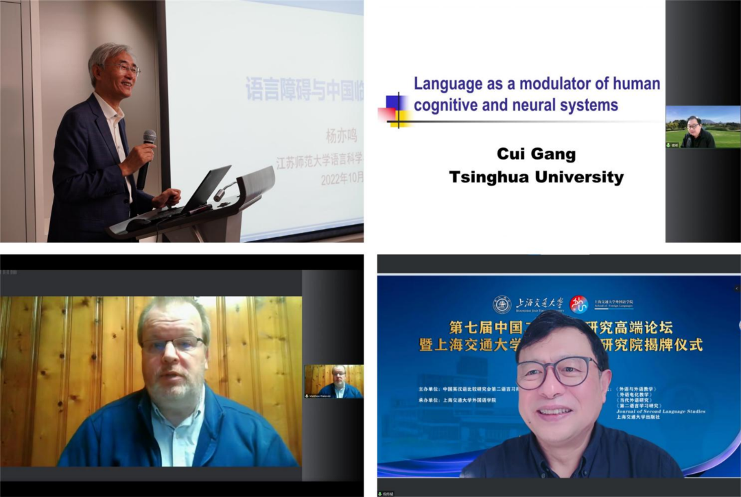 Last weekend of October 22 and 23 witnessed convening of the 7th Annual Forum on Second Language Acquisition and the opening ceremony of the Institute for Research on Languages and Wellbeing at Shanghai Jiao Tong University (SJTU). Centering on the theme of "Bilingualism and Wellbeing", the forum was held both online and offline. The opening ceremony of the forum was presided over by Qing Tao, deputy dean of the School of Foreign Languages of SJTU .