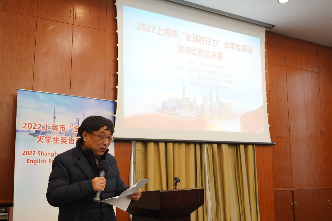 On December 3, the final of the 2022 Shanghai Global Competency English Public Speaking Contest was successfully held at Shanghai Xihua Hotel. Initiated by the School of Foreign Languages of Shanghai Jiao Tong University, the contest was hosted by the Shanghai College English Teaching Society and organized by the Virtual Teaching and Research Office of the College English Learning, Teaching and Testing. The final attracted 33 students from 12 universities in Shanghai.