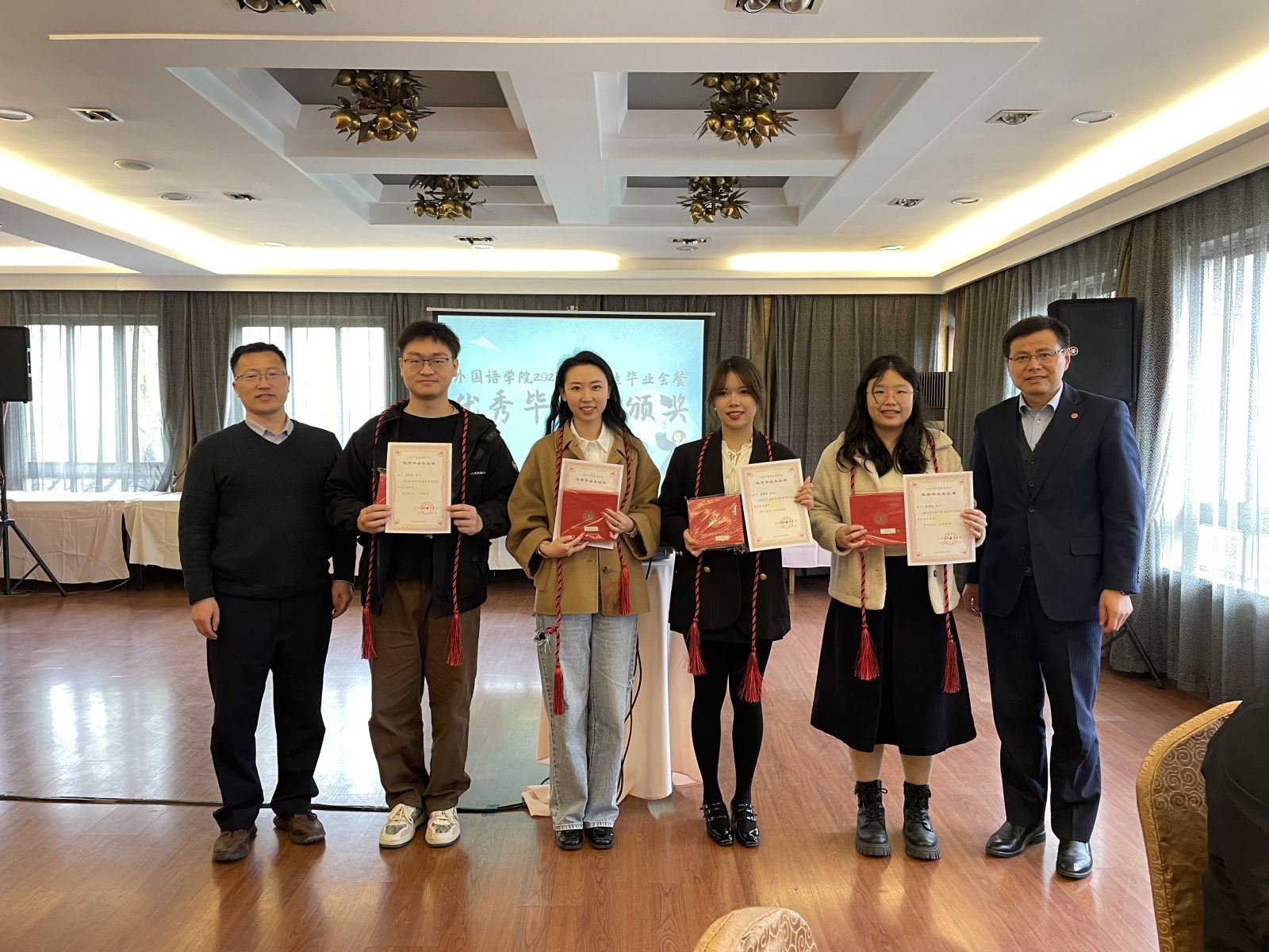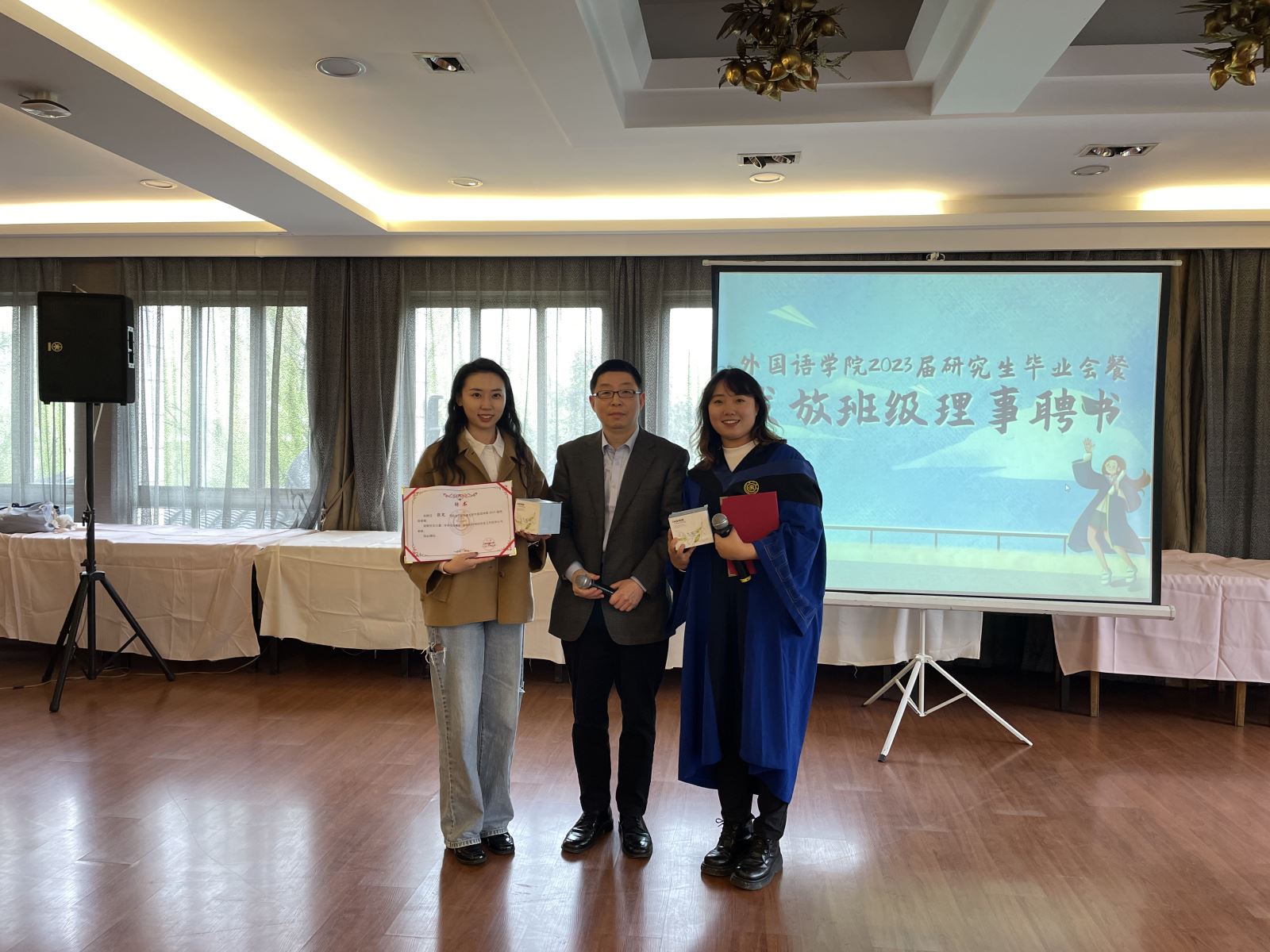 Tao Qing awarded the Appointment Letters of Class Directors to Zhang Peng and Li Aizhe, and urged the graduates to remember to go back home on their outgoing voyage to chase lofty dreams. He also said that the university and the SFL would continue to be concerned about them and would accompany them to a higher and farther future.