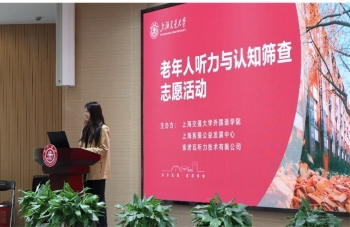 The official activity of hearing and cognitive screening for the elderly was held in four sessions on April 15 and 22. Nearly 70 elderly people participated in the activity. The event was hosted by Li Keyu, an undergraduate from English Department of the School of Foreign Languages. At the beginning of the event, Prof. Ding Hongwei, Doctor Lin Yi and Ms. Wang Hui delivered speeches respectively, introducing the purpose and objectives of the event and set a good start for the follow-up activities.
