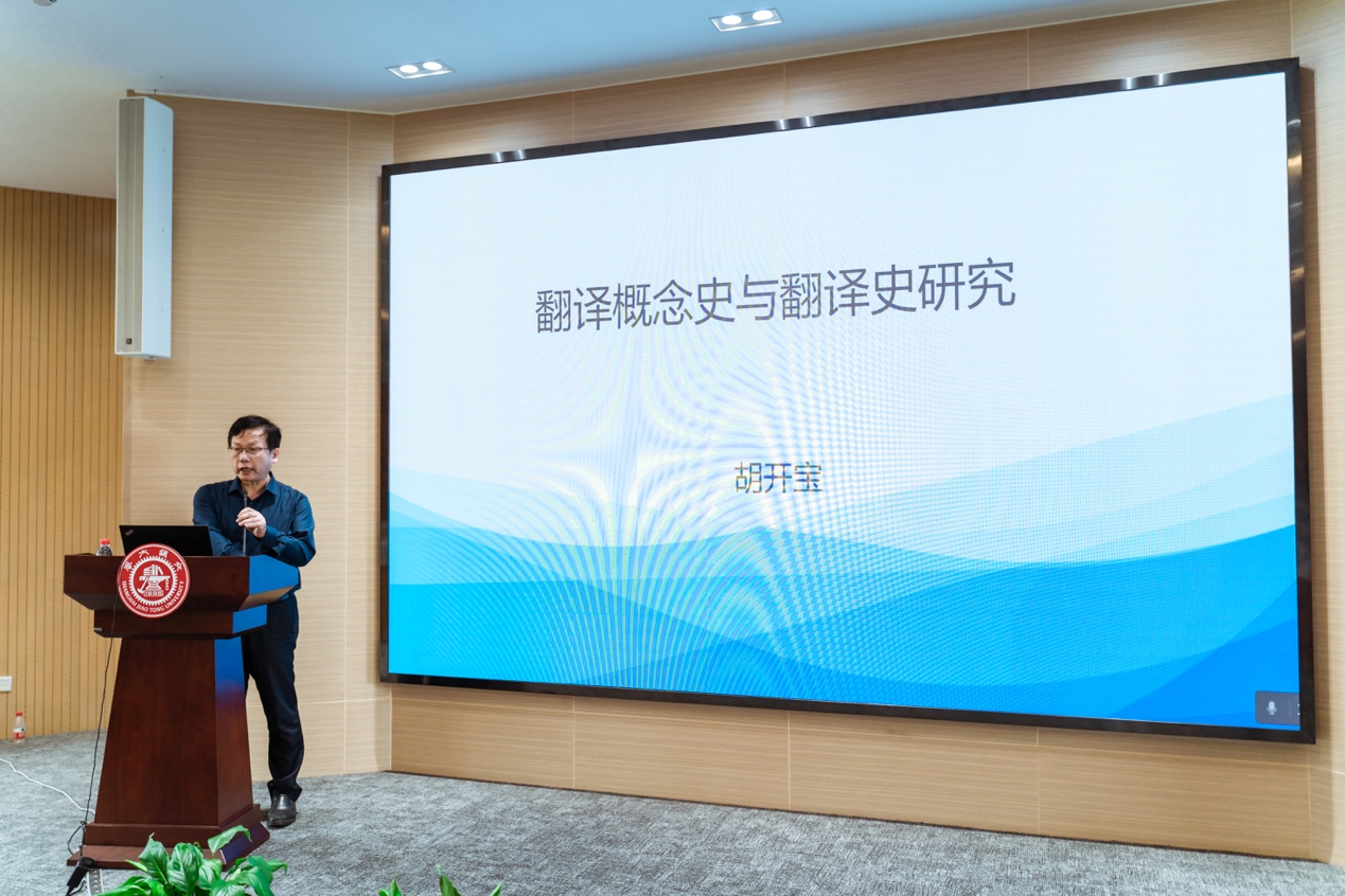 The first Keynote speech, “Conceptual History of Translation and Translation History,” was delivered by Professor Hu Kaibao from the Institute of Corpus Studies and Applications, Shanghai International Studies University. Hu Kaibao reviewed the development of conceptual history and differentiated the concepts of “conceptual history of translation” and “translation history.” He pointed out that the current academic discussions on the conceptual history of translation often ignored the macro context of translation history. Paying attention to the history behind conceptual translation can make the study of the conceptual history of translation more comprehensive.