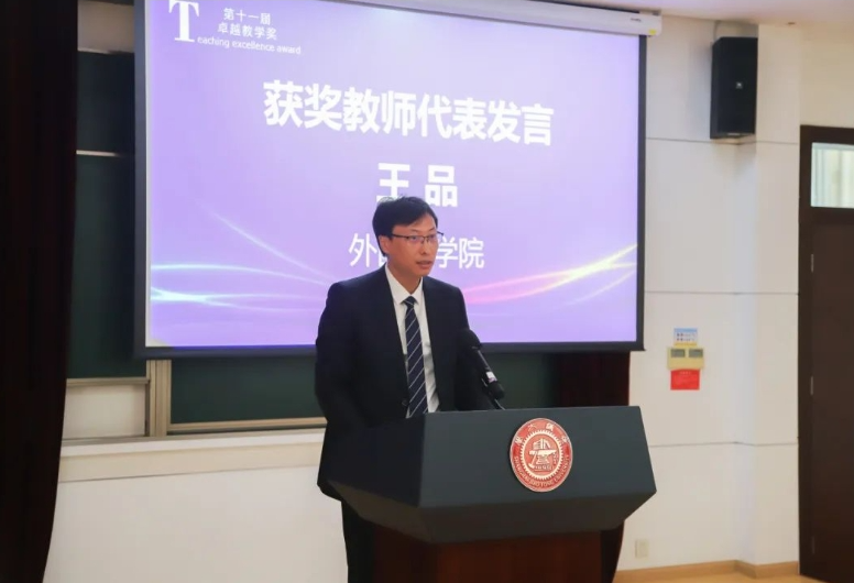 Wang Pin, teacher of the School of Foreign Languages, won the 2023 Shanghai Jiao Tong University Teaching Excellence Award · Siyuan Chair and spoke as the representative of the award-winning teachers.