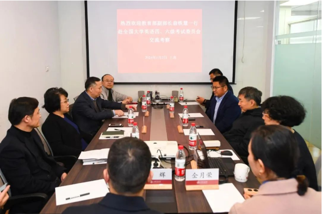On the afternoon of January 2, Weng Tiehui, member of the Party Leadership Group and vice minister of the Ministry of Education, visited Shanghai Jiao Tong University to investigate the National College English Testing Committee of Band 4 and Band 6. Li Qiang, Secretary of the Party Committee and president of the Examination Institute of the Ministry of Education, Shi Jianhua, Director of the Personnel Department, Xu Zhifang, Director of the Finance Department, Zhao Yinghua, deputy director of the Social Examination Office (presiding over the work), Wang Hao, deputy director of the Shanghai Municipal Education Commission, were among the entourage. Ding Kuiling, President of Shanghai Jiao Tong University and Academician of Chinese Academy of Sciences, and Zhang Zhaoguo, Vice president of Shanghai Jiao Tong University, met with the guests and exchanged views in the CET4 and CET6 office at Shanghai Jiao Tong University.