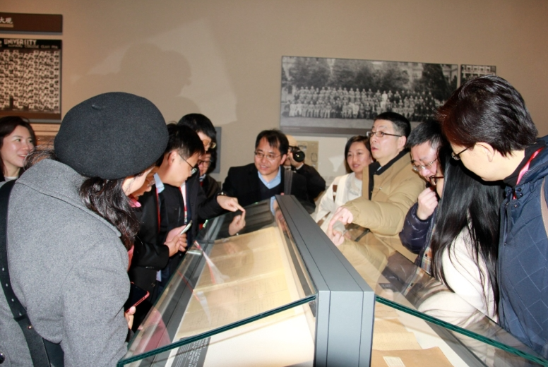 The guests, accompanied by Zhu Yifan, Tao Qing and Shang Biwu, visited the History Hall of Shanghai Jiao Tong University.