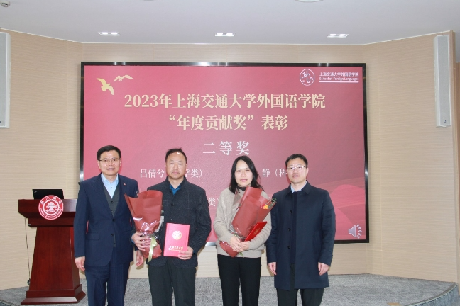 At the meeting, the teachers who won the 2023 SFL Annual Contribution Award were commended. Four teachers, Jin Wenfeng, Lin Yi, Li Peng and Xue Song, won the first prizes and four teachers, Lv Qianxi, Yu Jing, Wang Wang and Suo Yuhuan, won the second prizes. Ding Jian and Chang Hui presented certificates to the award-winning teachers and took a group photo. The award-winning teachers made acceptance speeches in turn.
