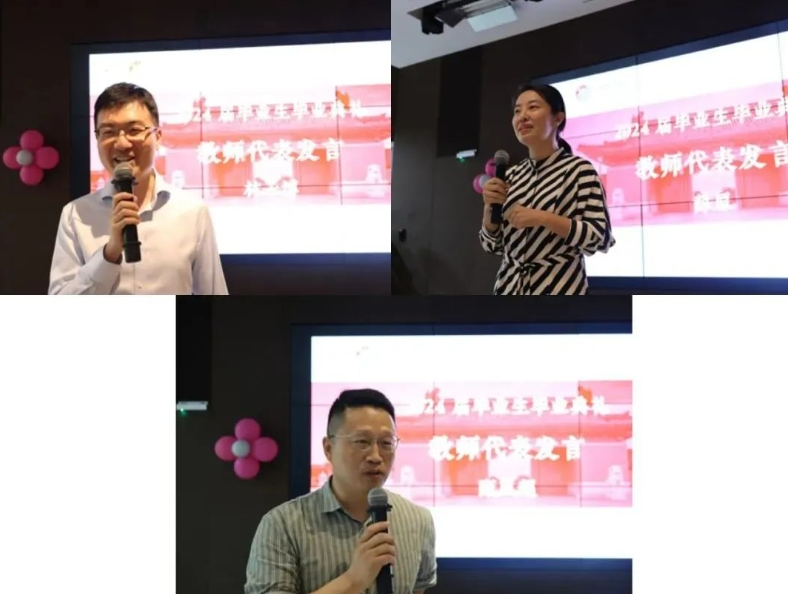 Class teachers' representatives, Ms. Jin Wenfeng and Mr. Lai Liangtao, and teachers' representatives, Ms. Fan Likun and Mr. Li Siqi, wished that the students could successfully complete the transformation from learners to researchers and practitioners, and also hoped to be the "bosom tree-hole" of graduates, waiting for their good news, and also always open warm arms for them to talk.