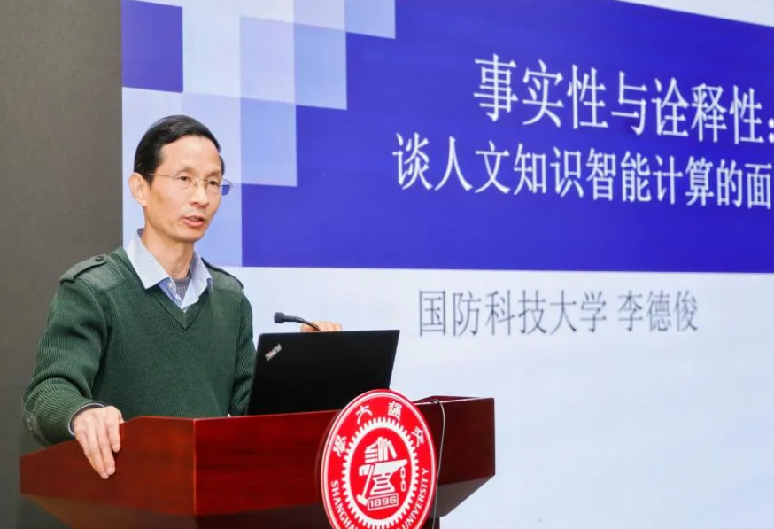 Prof. Li Dejun, editor-in-chief of Foreign Language Studies, analyzed the differences between humanities and social sciences discourse and scientific discourse from the three dimensions of the meaning of language, the meaning of the author and the meaning of the interpreter, in his keynote speech titled “Factuality and Interpretation: Talking about the Orientation of Intelligent Computing of Humanities Knowledge”.