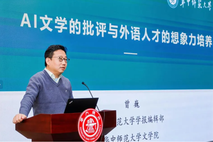 Prof. Zeng Wei, Deputy Editor-in-Chief of Journal of Central China Normal University, made a keynote report titled “Criticism of AI Literature and Imagination Cultivation of Foreign Language Talents”, pointing out that the cultivation of foreign language talents should pay more attention to imagination in order to show the new humanistic spirit in the age of science and technology.