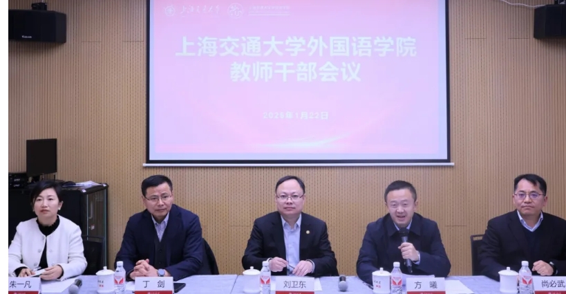 On January 22nd, the School of Foreign Languages of Shanghai Jiao Tong University held a meeting for teachers and cadres to announce the appointment and removal of the Party Secretary of the SFL. Liu Weidong, a member of the Standing Committee of the Party Committee and Vice President of Shanghai Jiao Tong University, Fang Xi, a member of the Standing Committee of the Party Committee and Minister of the Organization Department of Shanghai Jiao Tong University, the members of the school's leadership team and teachers attended the meeting. The meeting was presided over by Fang Xi.