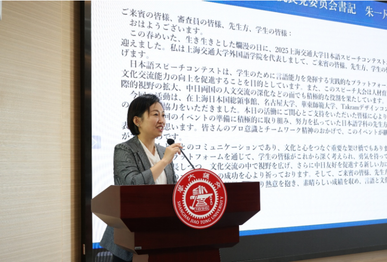Zhu Yifan, the Party Secretary of the School of Foreign Languages at Shanghai Jiao Tong University, delivered a speech at the opening ceremony of the event. She stated that the Japanese speech contest was an important brand project of the school, aiming to build a practical platform for showcasing language proficiency and promoting the upgrading of language learning and cross-cultural communication skills. It also played a positive role in broadening international perspectives and deepening cultural exchanges between China and Japan.
