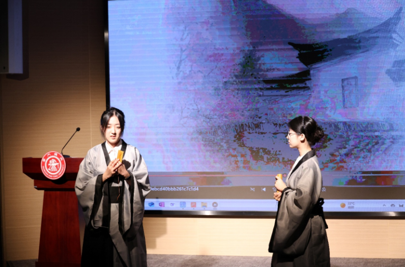 During the intermission, first-year students sang the chorus of "Qun Qing", and second-year students performed the short play "Liang Shanbo and Zhu Yingtai", demonstrating the charm of fusing language learning with artistic expression. Additionally, the students who won the first prize in the first-year reading group competition also presented their award-winning reading passages on the spot, earning enthusiastic applause.