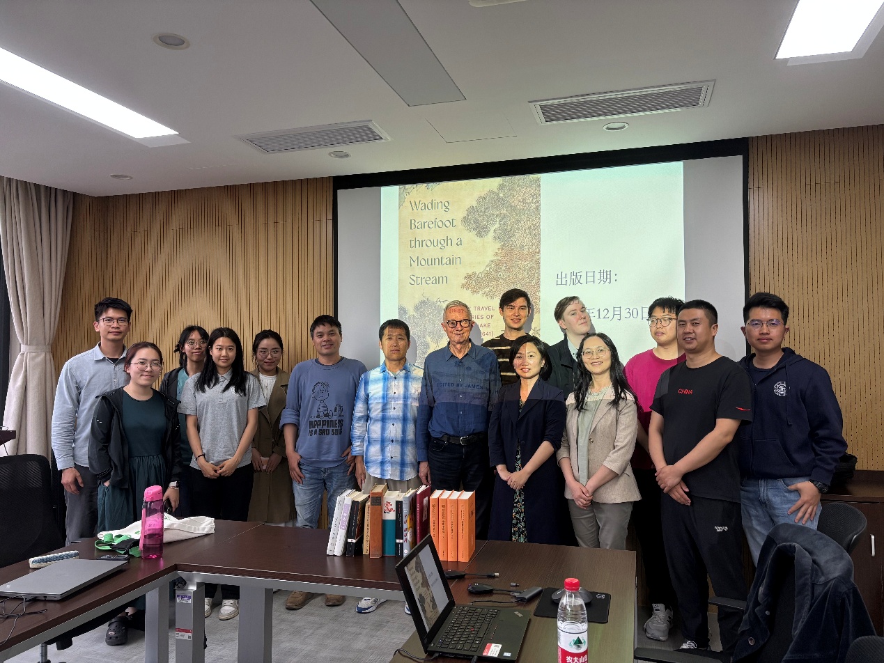 On the afternoon of May 8, 2025, Allan Hepburn Barr, a renowned sinologist, translator and professor emeritus from Pomona College in California, USA, visited the School of Foreign Languages. Mr. Barr delivered an academic lecture titled "The Joys and Sorrows of Translating Xu Xiake's Travel Diaries". The lecture was hosted by Wang Jinbo from the Translation and Cross-Cultural Center, and was attended by students and teachers of various majors.