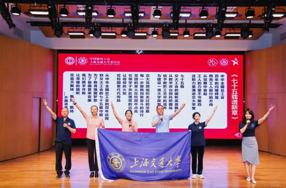 In her concluding remarks, Zhu Yifan expressed her sincere gratitude to the organizing and participating units and staff of the event. She said that the ten wonderful performances today linked the wisdom of ten trade union groups, and the cooperation among three units composed a magnificent harmony of a hundred years and seventy-five years. This fully demonstrated the united and enterprising spirit of Shanghai Jiao Tong University. Standing at a new historical starting point, let's continue to join hands, pass on the spirit of the labor movement through language, interpret the quality of craftsmanship through labor, and write the chapter of the times through unity.