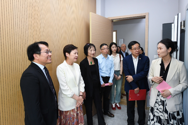 After the ceremony, the guests visited the Speech-Language-Hearing Research Center in the School of Foreign Languages. In 2019, Dr. Yang donated 3 million to establish a development fund for the school to support the research team of the center. With Dr. Yang's support, the center has become an important part of the national language and health research centers and plays an active role in serving the "Healthy China" strategy.